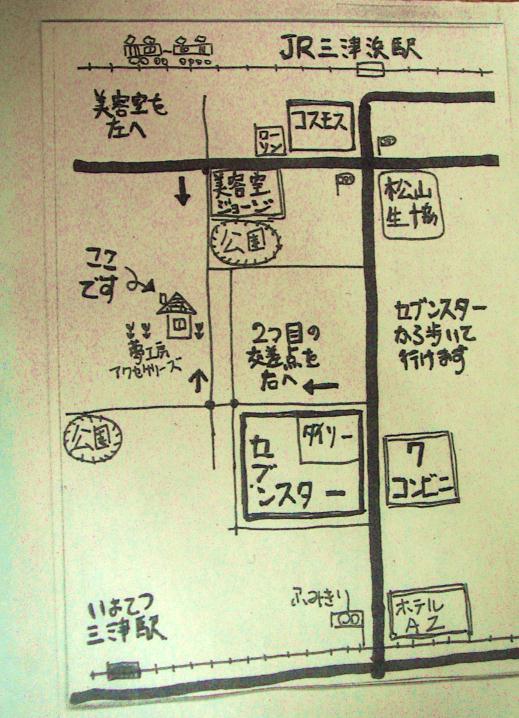 JR三津駅・セブンスター三津店・いよてつ三津駅から当店までの地図