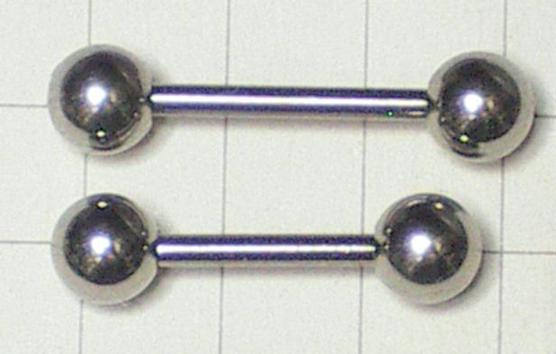ボールをはずした状態です。BBSTはねじ式になります。ピアス穴に通していただき、再びボールを装着します。左右どちらのボールでも取り外し可能です。小さな飾りをぶらさげることもできます。かなりかわいいです(笑)