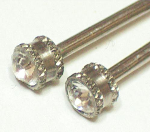 こちらは片側にクリスタルガラスがついたタイプです(クリスタルガラスはねじ式ではなく固定されています)ので、見た目は普通のピアスのようにお使いいただけます。