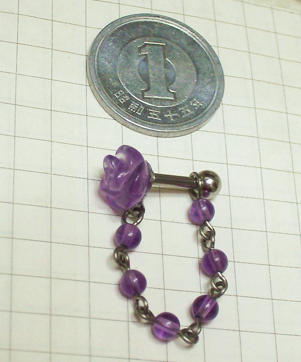 天然石チェーンが揺れる薔薇の花の純チタン軟骨・耳たぶ兼用ピアス18G・16G・14G)