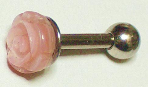 天然ピンクシェルバラの花つき純チタン製軟骨・耳たぶ兼用ピアス(18G、16G、14G)
