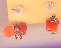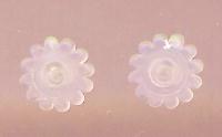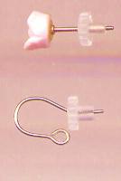 花がらのカタチをしたかわいい樹脂キャッチです。丸いイボみたいな樹脂キャッチが多いですが、これはかわいいですね。キャッチでも差をつけたい方におすすめ(笑)写真のように、フックタイプ(ひっかけタイプ)でもしっかりフィットします。見た目のかわいさ反面、実用的なたのもしいキャッチです。当店おすすめの樹脂キャッチです。