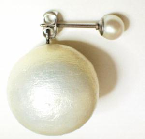 さらに詳しく&ご注文紹介ページへ特大コットンパールのついた純チタン製ピアスキャッチです。 ピアスキャッチ部分、およびパールをぶら下げている金属部分含めてすべて純チタン製です。お肌に直接触れやすい部分には真鍮(しんちゅう)や金属メッキを使用しておりません。正面から見ると耳の後ろの大粒パールが必ず見えるデザインでとってもかわいいですよ(笑) |