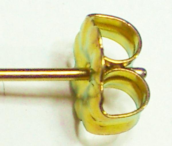 さらに詳しく&ご注文紹介ページへベースの真鍮(しんちゅう)に K14金(純金と銅の合金)を物理的に圧着したK14金張りのピアスキャッチです。当店のニッケルフリーピアスや、チタンのピアスにもお使いいただけます。 通常K14合金には、純金以外にも他のさまざまな金属が含まれますが、 このピアスキャッチを含めて当店のK14金張り(ゴールドフィルドとも呼ばれます)のピアス金具についてはすべて、真鍮(しんちゅう)をベースに、純金と銅のみの成分のK14合金の金属だけで作られたニッケルフリー素材であることが確認できている製品だけ、をご紹介しています(メーカーに確認済みです) |