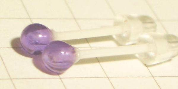 天然石アメジストのセラミックピアスです。濃すぎないむらさき色。小さくてかわいいですよ。マッチ棒みたいです。