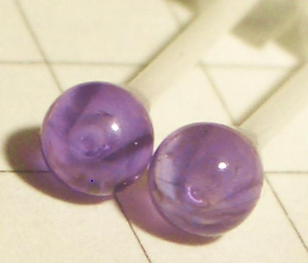 石は天然石のアメジストです。お色は薄めのアメ色(むらさき)です。天然素材ですので色の濃さには若干ばらつきがございます。
