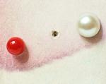 ●こうした小さな石のピアスはご用意するのがなかなか大変(笑)紅サンゴは大きな粒ですとなかなか目立ちますが、これくらい小さな粒ですとつけやすいと思います。