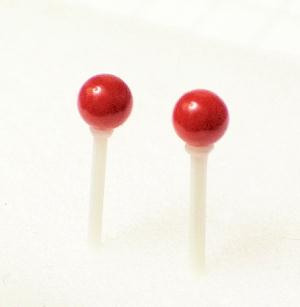 紅サンゴの金属不使用マッチ棒セラミックセカンドピアス(3ミリサイズ)