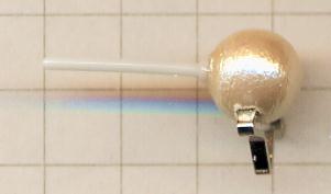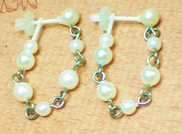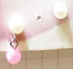今回のさわやかパールは、パールの下にかわいい『三つ葉のクローバー』のモチーフが直結でパールにひっついています。かなりかわいいですよ(笑)クローバーの色は画像の金色のほか、銀色、茶色もございます。三つ葉のクローバーは、その3枚の葉がキリスト教の『三位一体』に例えられ、幸福の意味合いがあるそうですよ。三つ葉のクローバーはパールに直結され固定されたデザインですので、お肌に直接触れることがございません。これも、こちらのデザインのメリットですね。お肌が弱い方も、どうぞお試しになってくださいね。