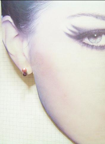 耳のイラストにつけてみました。こちらはパールの色は秋色グレープ6ミリ、石の色はアメ(濃いめむらさき)です。爪の色は茶色です