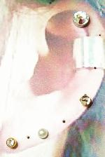 耳のイラストの上につけてみました。大きさの参考にしてみてください。ちょっと福耳ですね(笑)