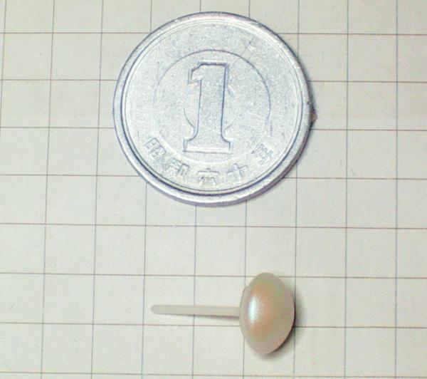 パールの大きさは8ミリです。高さは4ミリくらいで少し平たいおもちのような形をしています。やや大粒ですが高さが低いのであまり出っ張らずつけやすいです。