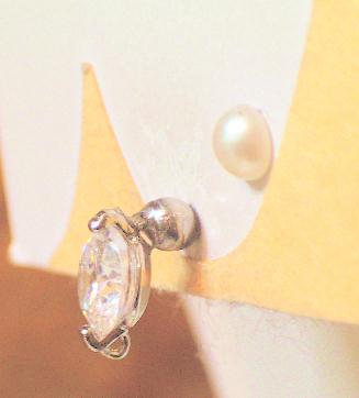 サージカルステンレスです。そのステンレス部分をはさんで、飾りの部分がついてます。飾りの部分が直接お肌につかないデザインとなっています。