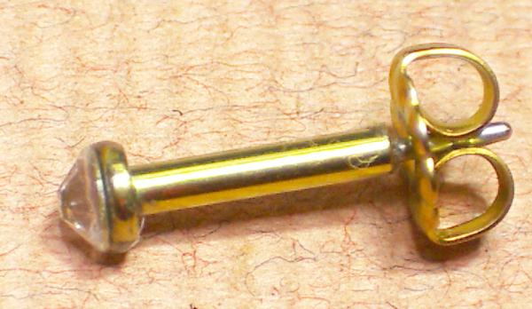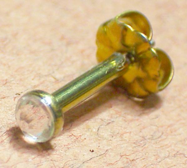 ファーストピアス用のキャッチとの比較。こちらのセカンドピアスは通常のピアスに使うチタンキャッチがお使いいただけます。付け外しが手軽に行えます。