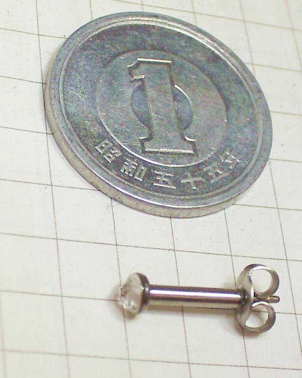 方眼の一マスは5ミリです。ねじボールではなく通常のピアスのキャッチが使えます。軸長めでつけやすいですよ。太さは耳たぶ向け16G(太さ1.2ミリ)軟骨向け14G(太さ1.6ミリ)です。
