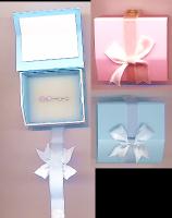 サイズ:およそ横6センチ×縦5.5センチ×高さ3センチくらい、小さくかわいいですよ。リボンつきですのでこのまま手軽なプレゼントとして手渡ししていただけます。当店ではギフトラッピングのサービスは行っておりませんので、お手数ですがお客さまのほうでギフトボックスにピアス(イヤリング)を入れる作業を行っていただくようお願いします。