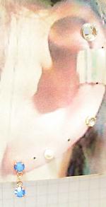 耳のイラストの上につけてみました。一緒についてる小さいパールは大きさ4ミリです。大きさの参考にしてみてください。ちょっと福耳ですね(笑)