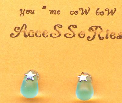 当店の人気商品「たまごパール樹脂ピアス」のたまご部分がガラスになりました。うすブルーのガラスには、うっすらスモークがかかっており春の朝露みたいな感じです。光りがあたるとうっすら光ります。星もついています(笑)こんなかわいい樹脂ピアスがあるとは(笑)この春おすすめです。小さくてかわいいですよ。