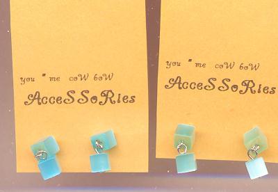 砂糖菓子みたいな四角いガラスが2つついた樹脂ピアスです。耳元でころころゆれてかわいいですよ。春っぽい色からこの秋のお色までお好みでどうぞ