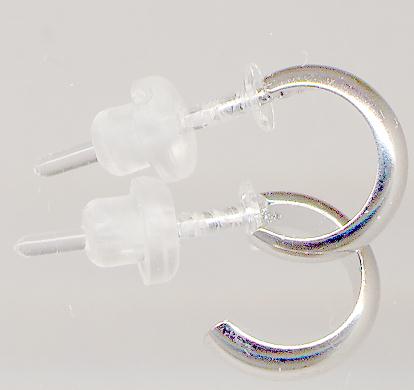 定番のG型スタッド型です。金属部分はロジウムコーティングがなされたニッケルフリー素材で、軸は樹脂です。18金のピアスでもアレルギーの反応がでて、プラチナ以外のピアスは使えない方もおられると思いますが、軸を樹脂にかえることである程度の時間でしたら使えるようになります。