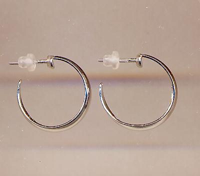 ロジウムコーティングのピアスは、高級感がありますし、シルバーのように黒くなることもありません。大きさは、外径がおよそ8ミリ、内径がおよそ6ミリです。小さく邪魔になりませんので、普段使いにピッタリです。いかがでしょうか?