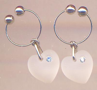 雪色ハート(フロストガラス)フープノンホール 商品番号nh-fh 価格 ワンペア¥1500-(片方でしたら¥750-) ※消費税込み 送料¥120-(定型外郵便) こちらはイヤリングですので、他のイヤリング(ノンホールピアスや普通のイヤリング)へのお直しは無料でできます。 |