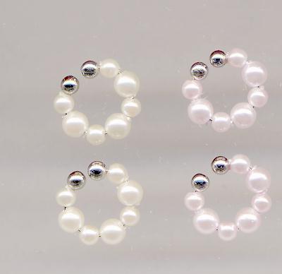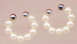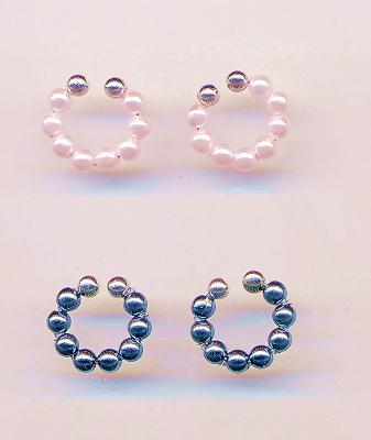 ~ノンホールピアスの金具の新しいタイプです。従来のノンホールピアスと同じくピアスみたいなイヤリングですが、形がまんまるですので、フープピアスをしているように見えます。 わっかの大きさはおよそ1cmですし、細いのであまり目立ちません。金具が見えますが、金具自体がフープピアスみたいでかわいいですよ。あまりみない金具ですが、ちょっと流行りそうな感じです。 よくゆれますしかわいいデザインが多いですよ。ノンホールピアスよりも若干落ちにくいと思います。しかしワイヤーの力ではさむだけですので、やはり落とさないように注意は必要ですね。 この金具には、画像のように丸い金具の両端に小さな玉が2つついています。この玉と玉の間で耳に挟んで使います。長く使っていて玉と玉の間にすきまができたときには、玉と玉を重ねるような感じでわっかの大きさを小さくしてやると、すきまがなくなります。 当店のピアスを、この金具のタイプに交換してお買い上げいただくことができます(+100円)。ご希望のお客様はピアスをご注文いただき、ご注文時に フープ型ノンホールピアスに交換希望 とお申し付けくださいませ。 なお、このページの フープ型ノンホールピアス を、 他のイヤリング(クリップ式、ネジバネ式)やノーマル型のノンホールポアスに交換してお買い上げの場合は、料金はかわりません(金具代込みの価格です)