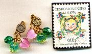ひまわりのついたノンホールピアスの金具に、ピンク色のハート、夏色ライム、エメラルドみたいなよくひかるガラスがついています。春っぽい色合わせですがひまわりがついただけで一気に夏模様です。
