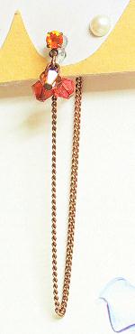耳にはさむ金具の部分です。弾力のある非金属の樹脂です。こちらの商品は後ろにチタンキャッチのついたデザイン(真ん中のタイプ)でお送りします。チタンキャッチからチェーンがゆれます。チェーンなしをご希望の方は左の通常タイプや、右のパールのタイプもお選びいただけます。