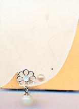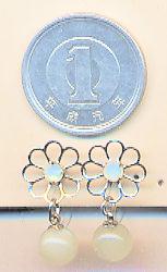 お花の大きさは1センチくらいです。お花の下で揺れるムーンストーンの大きさは6ミリです。
