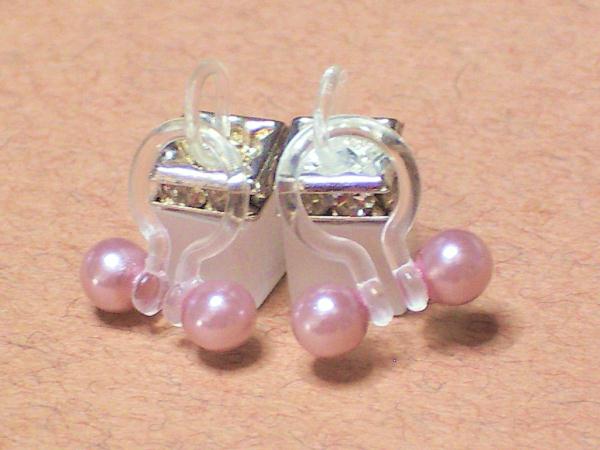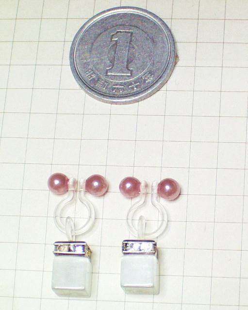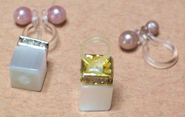 女王様キューブが揺れるパール&パールパール樹脂イヤリング(樹脂ノンホールピアス)~ピアスみたいなイヤリング