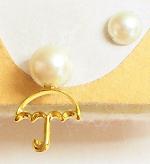 - 小さな傘モチーフがついたさわやかパール樹脂イヤリング(樹脂ノンホールピアス)