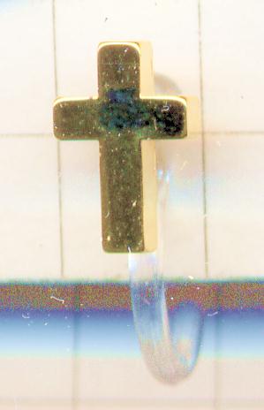 クロスの大きさはタテ8ミリxヨコ5ミリくらいです。クロスの素材はメッキとなります。銀色と金色のクロスが前後についています。