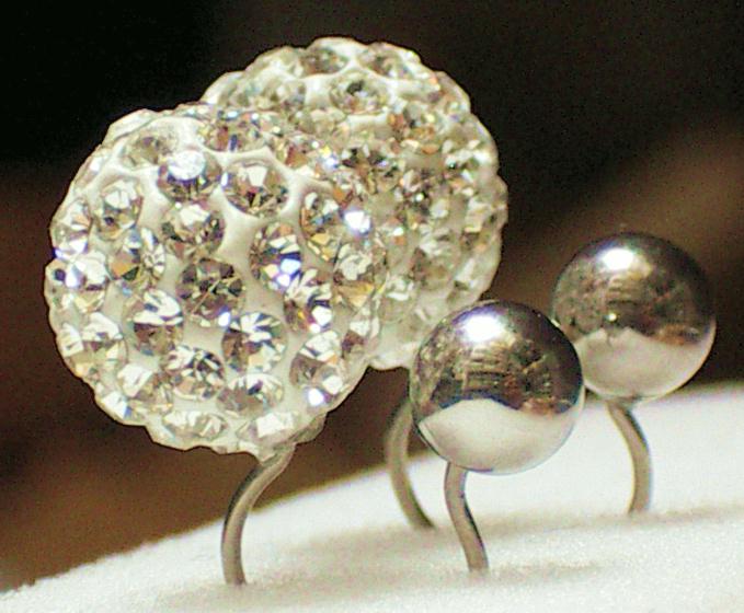 前後のボール部分を含む、耳にはさむ金具全体がメッキ不使用のステンレス製です。 さらに詳しく&ご注文ページへ