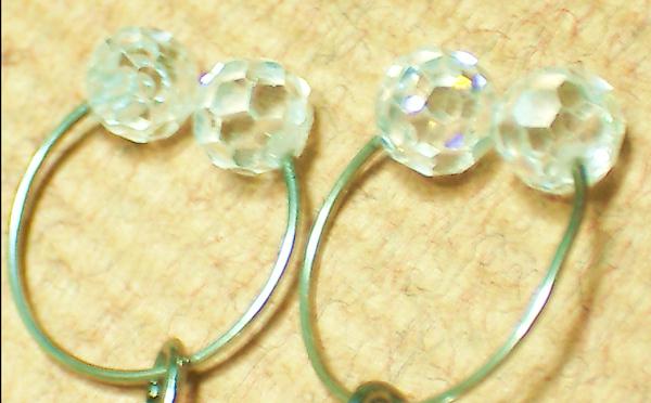 イヤリング金具はわっか部分はステンレス製です。メッキは使用しておりませんので比較的安全な素材となります。わっか部分は耳に直接当たりにくいデザインとなっています。耳に直接当たる部分には透明な4ミリの石(4ミリキュービックジルコニア)がついています。