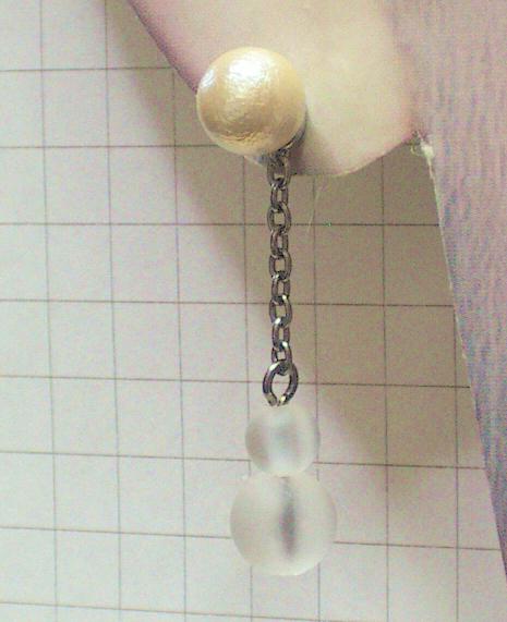さらに詳しく&ご注文紹介ページへ特大コットンパールのついた純チタン製ピアスキャッチです。 ピアスキャッチ部分、およびパールをぶら下げている金属部分含めてすべて純チタン製です。お肌に直接触れやすい部分には真鍮(しんちゅう)や金属メッキを使用しておりません。正面から見ると耳の後ろの大粒パールが必ず見えるデザインでとってもかわいいですよ(笑) |