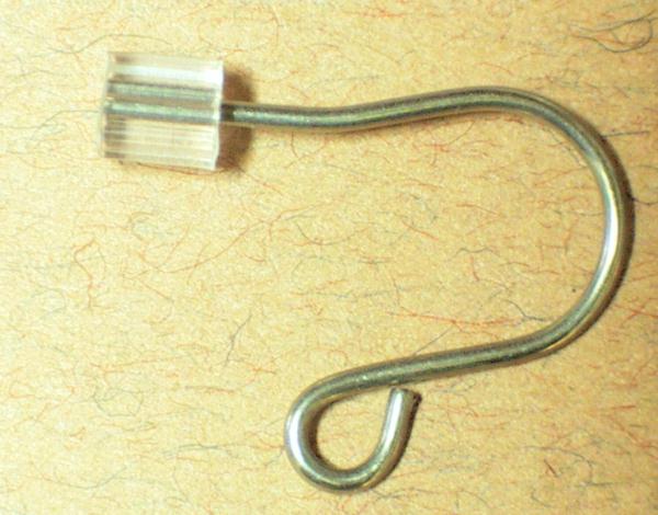 使用例。フックピアス用樹脂キャッチが付属します。