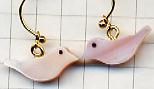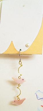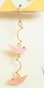 ◆◆貝を加工して作られた2羽のことりがヒラヒラと揺れて、仲良く飛んでいるように見えるピアスです。淡い薄紅色でかわいいですよ。ひよこサブレみたいなことりですよね(笑)