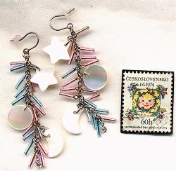 貝でできた月星太陽と糸みたいに細長いガラスのしゃらしゃらが夏の雰囲気いっぱいです。