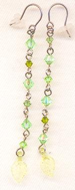 若葉色の春色リーフのロングロングタイプです。若草グリーンなガラスチェーンにおそろいのうすグリーンの葉っぱが下がっています。春らしくっていいですよ。