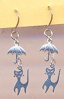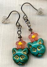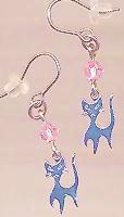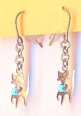 ターコイズが好きで好きでたまらない、おすましネコちゃんのピアスです。ターコイズ色のお花をつけて、おしゃれな首輪までつけてます。なんとくびわまでターコイズ色(笑)。ここまでやるかという感じですがターコイズ好きなネコちゃんの相当なこだわりが感じられるデザインですね(笑)。ターコイズはガラス製ですが見た目いい感じですよ。金属部分が金色タイプもございます。