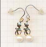 ◆◆パールの上におすまし顔のネコが乗ってるように見えるピアスです(笑)パールはネコちゃんの下に ぶら下がっているのではなく特殊な加工をしてネコに直結の形で直付けされていますので、 ネコちゃんと一緒に振り子みたいに揺れてかなりかわいいですよ(笑)