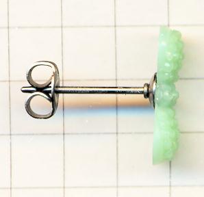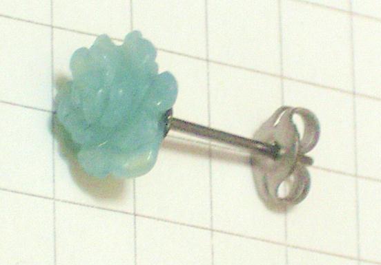 軸の長さ11ミリ、有効軸長8ミリ軸はチタンです。チタン軸とお皿部分にはメッキがかかっておりません。ファーストピアスのロングタイプとほぼ同じサイズですので耳が厚い方にもおすすめします。 当店で数年前からご紹介しております定番のガラスターコイズのお花ピアスです。ターコイズは本物みたいに見えますね(言わないとわかりません)お花の真ん中に天然の珊瑚が1粒入っていますのでガラスのターコイズがよりいっそう本物みたいに見えます(笑)この春から夏にかけてもピッタリだと思います。軸がセラミックや樹脂のタイプもございますが、その場合軸はロングタイプにはなりませんのでご注意ください。 |