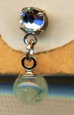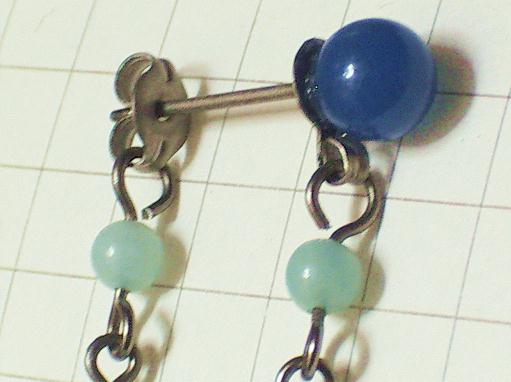 軸の長さ11ミリ、有効軸長8ミリ軸はチタンです。チタン軸とお皿部分にはメッキがかかっておりません。ファーストピアスのロングタイプとほぼ同じサイズですので耳が厚い方にもおすすめします。 天然石シーブルーカルセドニーです。澄みきった湖のような色ですね(シーブルーですから青い海の色ですが笑)このブルーの色はドイツの熟練職人の独自の技法により発色させているそうです。心が平穏を保つ効用があるそうですよ。 こちらのピアスは、ピアスの頭に天然石とお揃いのガラスをつけています。クリアでキラッとしたガラスの輝きと優しい自然な天然石の光がお互い引き立てあっていい感じになってますよ。恋愛成就のお守りとしても有名ですね。月の光を放つ石です(笑) 軸がセラミックや樹脂のタイプもございますが、その場合軸はロングタイプにはなりませんのでご注意ください。 |