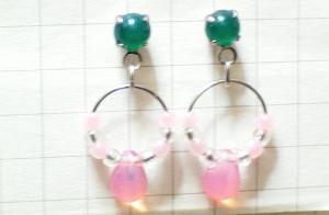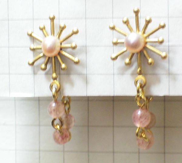さらに詳しく&ご注文ページへ◆こちらのピアスの天然石インカローズは高品質な透明タイプではなく、淡いサーモンピンクに練乳のような白色がうっすらとかかった不透明タイプの石になります。こういうミルキータイプのインカローズもかわいいですよね。 ¥1,300- |