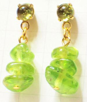 さらに詳しく&ご注文ページへもみじ色の秋色が入荷しましたのでご紹介します。くすんだアースカラーの秋色ではありますが華やかな色合いで、 1年中お使いいただけますよ。ピアスの頭についてるカット少な目の優しく光るガラスと その下の3個のガラスとの相性がよいですね。ピアスの頭に小さなかわいい(3ミリ)のクリスタルガラスつき、 その下にはかわいいガラス3個ついたピアスです。3個のガラスはちょっとずつ色が違うグラデーションになってますから 揺れると光具合もかわいいですよ。 ¥800- |