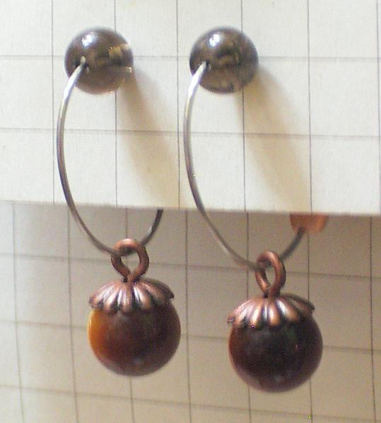 秋色ライムブランコピアスです。ブランデーのように茶色くくすんだ色のライムボールに、何と銀色のブランコが揺れています(笑)ピアスをつけていただくと耳たぶでブランコがキラキラ揺れるようなデザインとなります。画像ではわかりにくいですが、ライムボールの上にはモミジ色の小さな赤いガラスが1粒ついています。アースカラーっぽいくすんだ秋色の赤です。涼しい秋が待ち遠しいですね(笑)樹脂ピアスやイヤリング(ノンホールピアス)、セラミック軸のタイプもご用意できます(このピアスでもこれが可能になったのご紹介させていただきました。) 軸がセラミックや樹脂のタイプもございますが、その場合軸はロングタイプにはなりませんのでご注意ください。 |