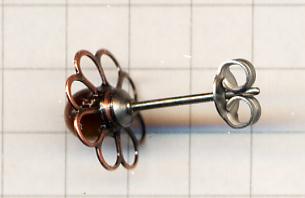 軸の長さ11ミリ、有効軸長8ミリ軸はチタンです。チタン軸とお皿部分にはメッキがかかっておりません。ファーストピアスのロングタイプとほぼ同じサイズですので耳が厚い方にもおすすめします。 和風のお花のピアスです。くすんだアンティークブロンズ色は秋っぽくみえますが、真ん中にちょこんとパールを1粒つけたお花が何となく爽やかで以外に春にもピッタリ合いますよ。あなたのお気に入りになりそうなピアスです。お気に入りになったとたんに無くしたときがショックなんですよね(笑)しかし当店では片方からご用意させていただきますのでご安心くださいませ。ありがとうございます。3月のバレンタインのお返しに一石二鳥でどうぞ(笑)軸がセラミックや樹脂のタイプもございますが、その場合軸はロングタイプにはなりませんのでご注意ください。 |