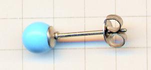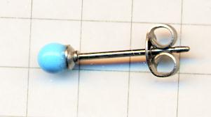 ムラの少ない綺麗な天然石ターコイズです。大きさ3ミリの小粒タイプですので職場でも使いやすいですよ。小さくてもちゃんとターコイズだとわかりますしかわいいですよ(笑) 薄い水色ですのでつけやすいですし、他の石とも合わせやすいですよ。プレゼントにもおすすめ。軸が長めですので耳の厚い方でも安心です。 |