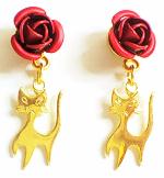 さらに詳しく&ご注文ページへお待たせしました(笑)口紅のような紅色の薔薇の花のピアスです。「真っ赤なバラ」のイメージにピッタリなピアスです。こんな感じの鮮やかな真っ赤な薔薇の花はなかなかないと思います。大きさは大きめ(15ミリ)です。 以前ご紹介しました深紅色の薔薇の花のピアス(13ミリ)よりもやや大きめです。アルミ製ですので大きさの割には軽くてつけやすいですよ。質感も良いものですのでプレゼントにもおすすめします。 |